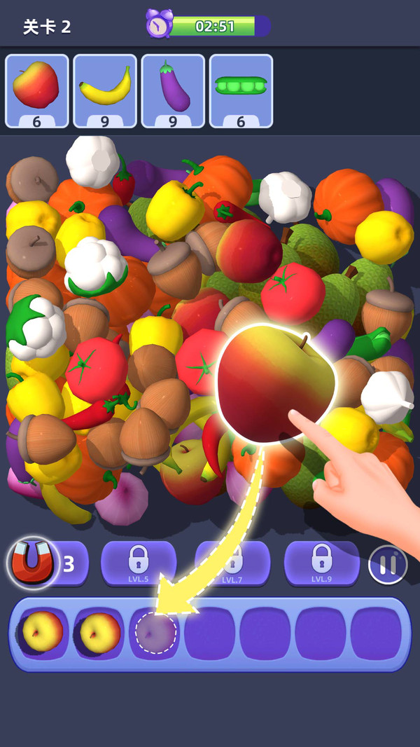1、优先消除堆在下层的物品,这样能帮助上层物品掉落露出更多可选项。