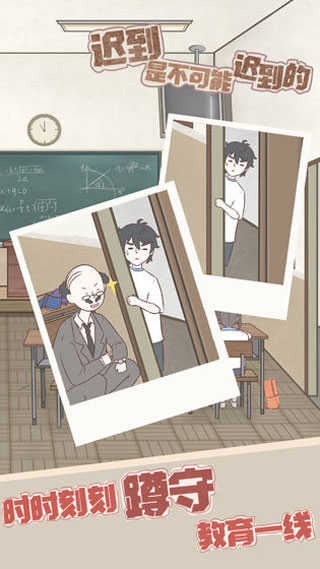 迟到是不可能迟到的游戏是一款超有趣的益智闯关游戏,游戏中玩家扮演一位天天迟到的中学生,玩家需要在老师不发现的情况下顺利的进入教室到达自己的位置。游戏既魔性又刺激玩家,游戏中玩家还可以拾取各种道具来提高自己的成功率。
