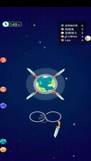 1.玩家需要吸收其他飞行刀以增加自己的飞行刀的数量。