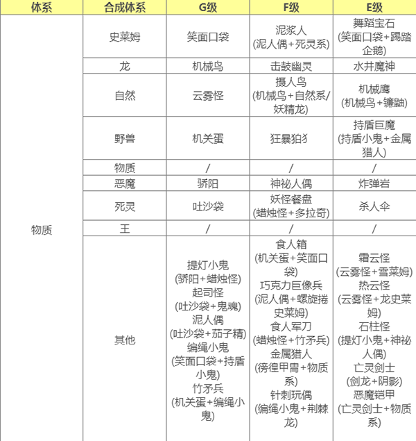 要合成E级怪 使用通用配方合成需要父母任一E级 或 使用指定配方