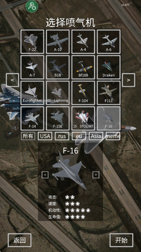 多样的战机选择:多种不同类型的战斗机供玩家选择,每种战斗机都有其独特的特点和能力,可以根据任务需要合理选择战机完成挑战。