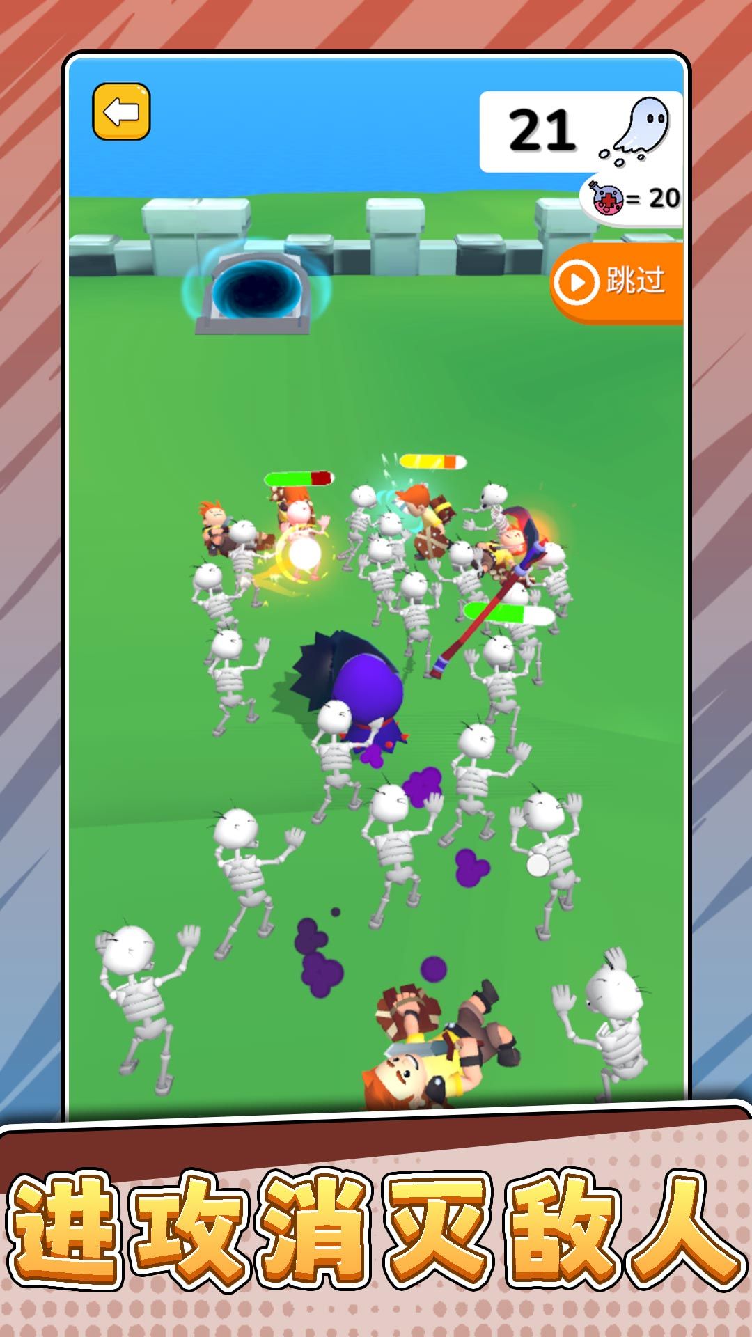 1、每个角色都有不同升级路线,快速提升战斗力,根据敌人类型选择兵种,构建不同类型的军队。