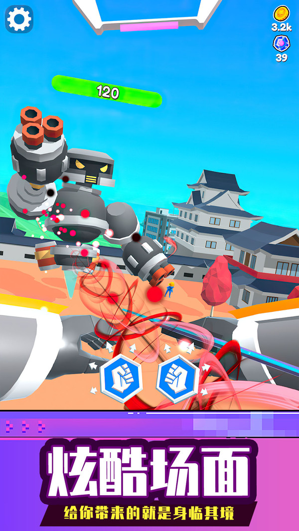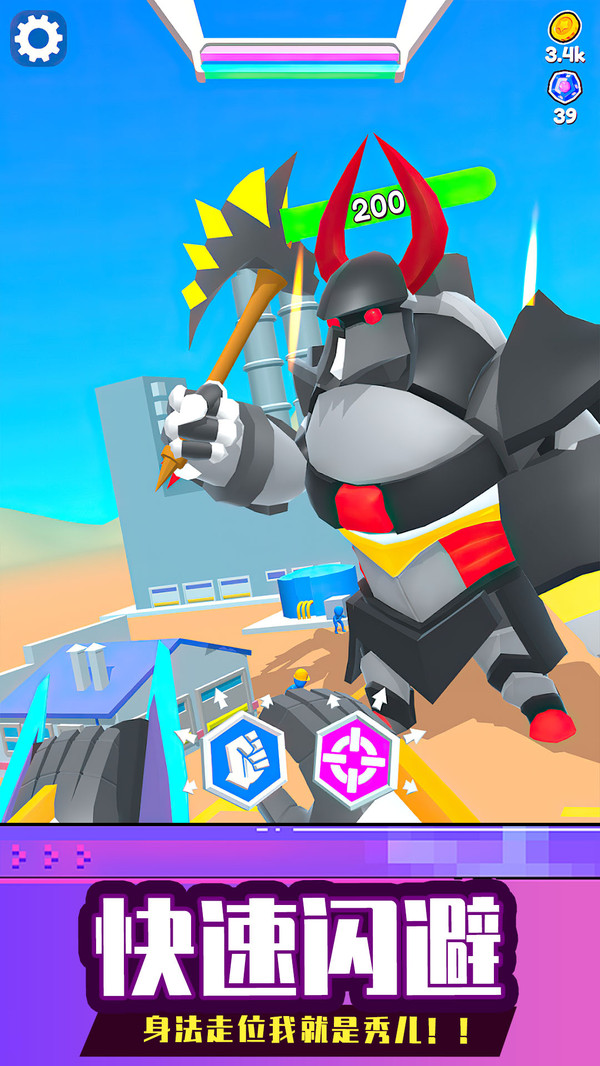 1、操控机甲参与实时战斗,灵活走位释放技能,消灭所有来袭敌人。