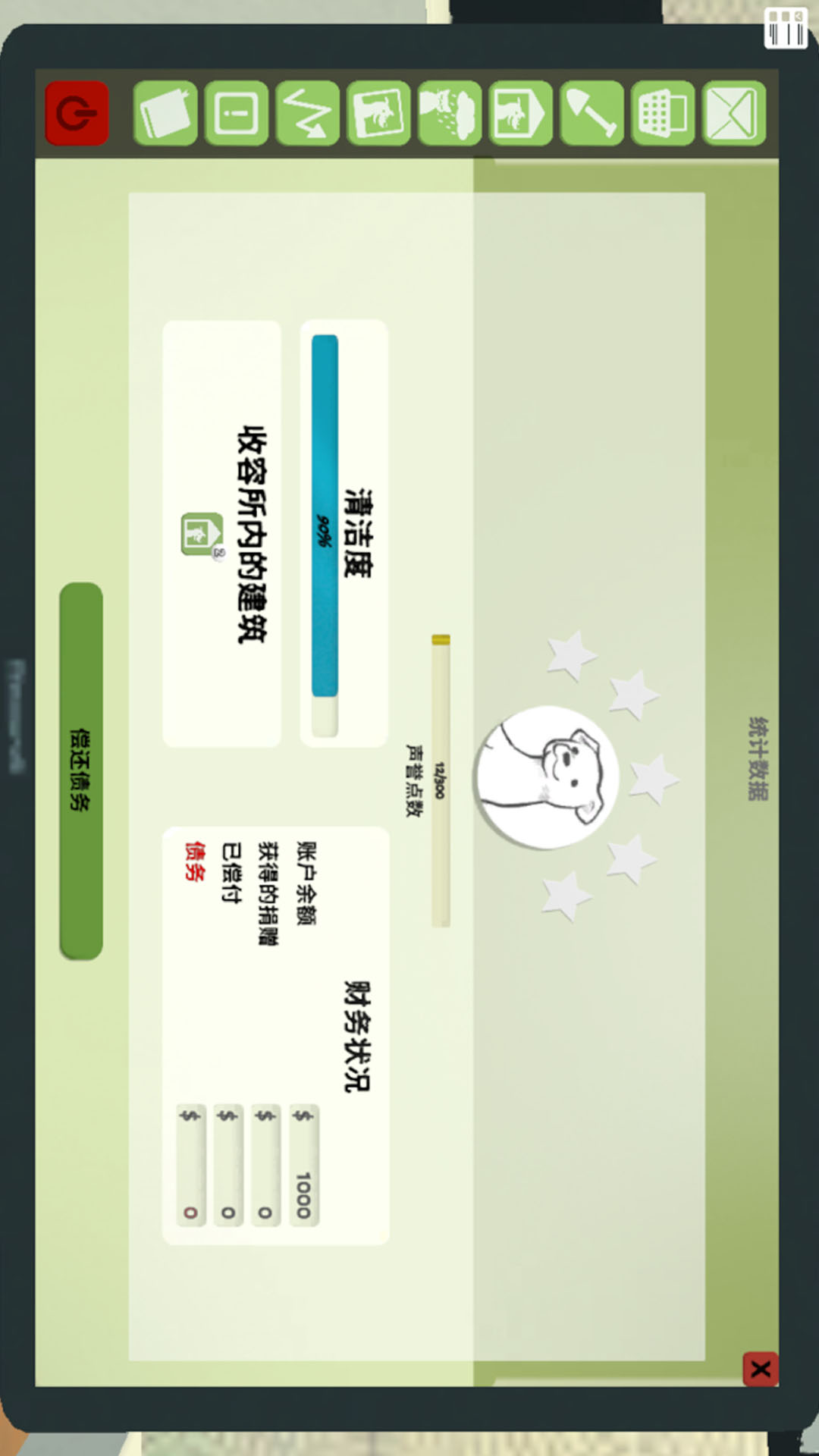 2、自由设计和扩大你的收容所,添加新房间像康复区或游乐场,升级医疗设备和生活设施,让动物们住得更舒适,打造一个高效又温馨的宠物救助中心。