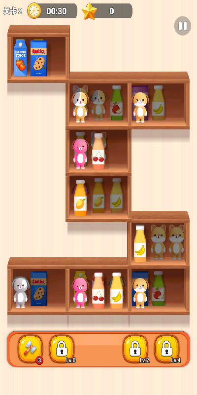 货柜消除模拟游戏是一款超级有趣的休闲闯关游戏,以消除玩法为核心。游戏里的玩家将会以超市理货员的身份出现,面对超市货架上琳琅满目的商品,你需要通过点击的方式去移动它们,将相同的物品移动到一起消除清理掉才能完成挑战。