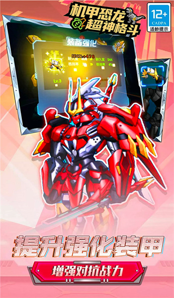 机甲恐龙超神格斗游戏是一款系统玩法非常丰富的手机机甲对战类游戏,这款游戏带来了沉浸式格斗玩法,通过了很多不同类型的机甲恐龙角色,还有非常炫酷的战斗特效,打击感也非常的真实,还有各种武器装备可解锁,甚至可以组建战队挑战全新模式。