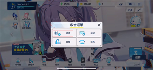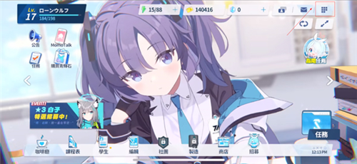 1、打开蔚蓝档案手游,点击右上角小方块打开菜单;
