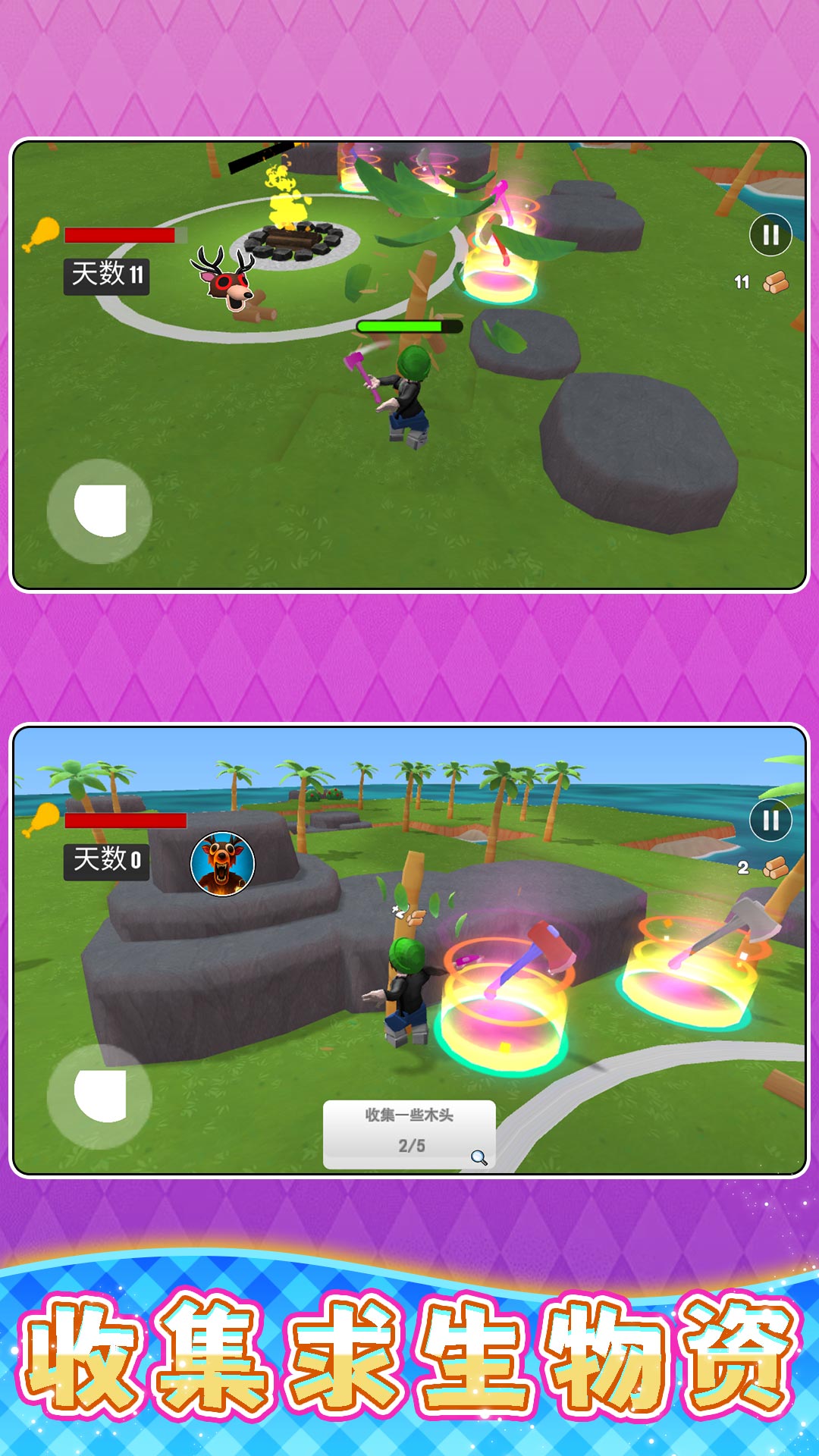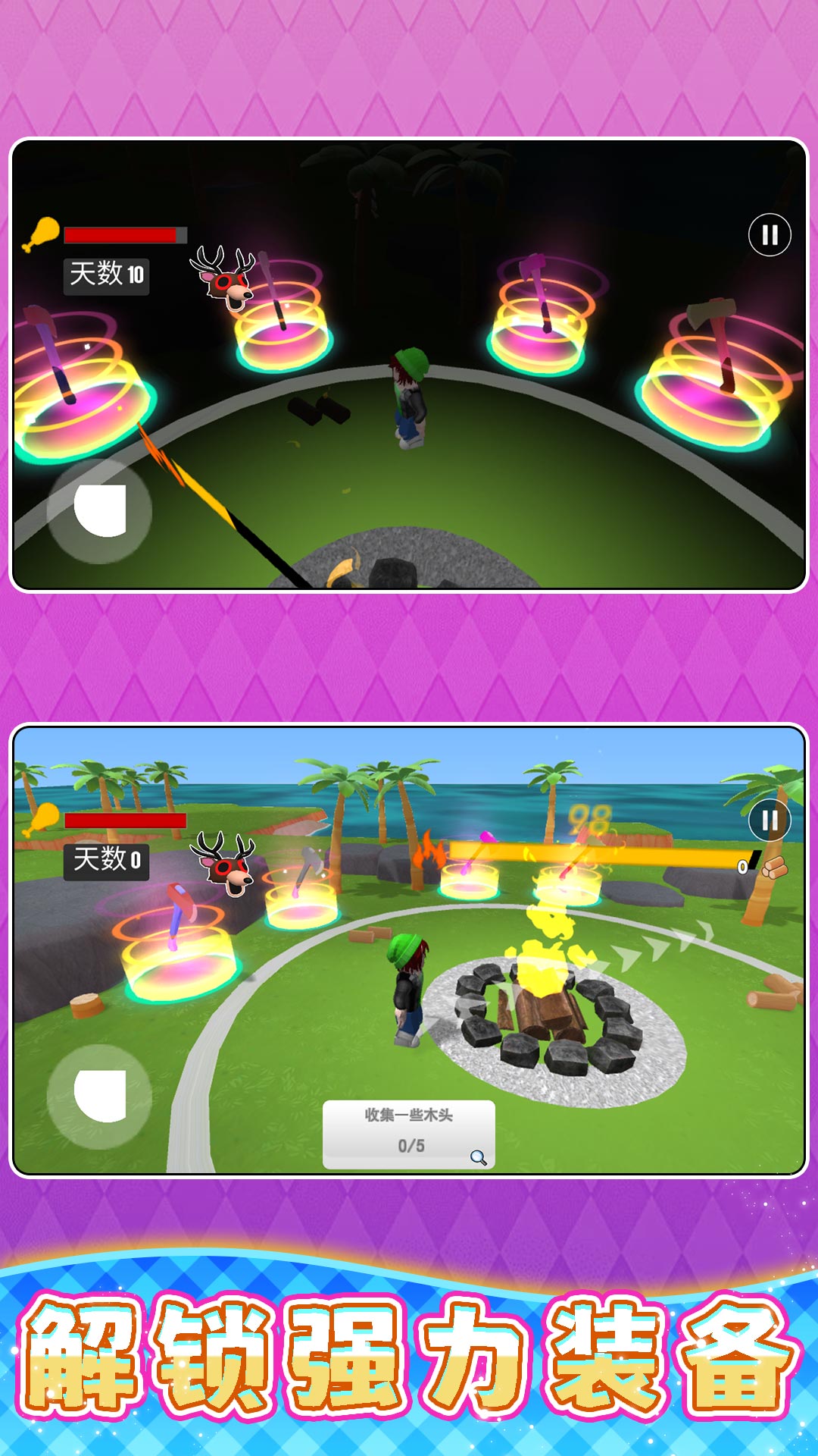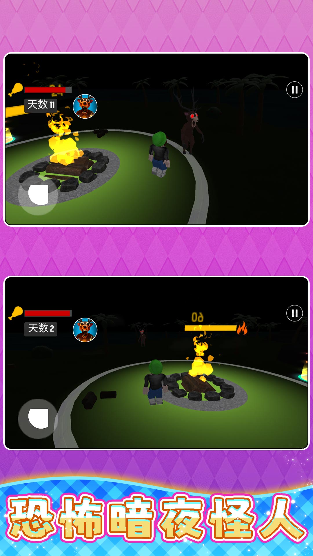 首先映入玩家眼帘的是一个大草原,白天的时候到处都是资源,玩家可以随意采集和使用,到了晚上就有各种可怕的生物来骚扰玩家。大家在玩荒野小兵历险游戏的时候,要充分利用白天的时间,打造安全的庇护所,在空地上面搞一个火堆,晚上就能靠着火把来驱赶这些怪物啦!