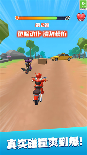 2、核心玩法融入暴力碰撞元素,不同于传统竞速仅比拼速度,可通过碰撞干扰对手,展现竞技的野性与爽感。