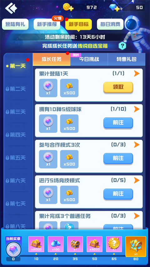 2、登陆有礼,每日签到既可以领取超强传说球球。