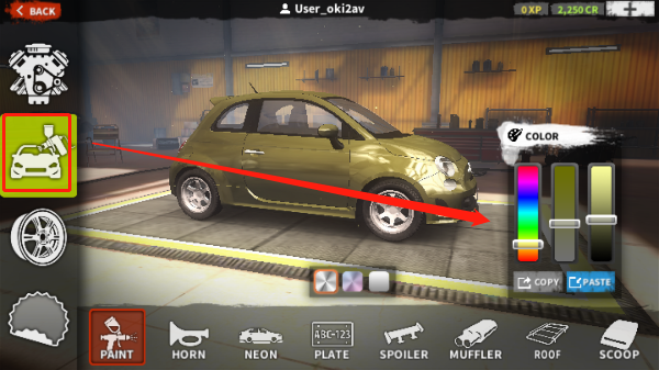 点击“自定义”,我们可对车辆的发动机、车漆、车轮以及DIY贴纸等进行自定义改装