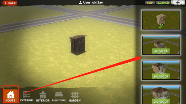 点击“house”可购买房屋,购买大面积房屋后,还可解锁围栏、墙砖等材料购买权限