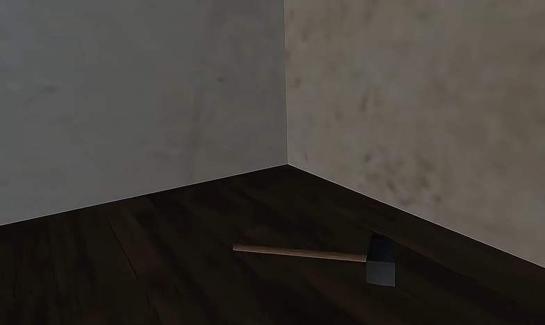 3、被约翰绑架后玩家在一处房间中醒来,在角落可以找到一把锤子