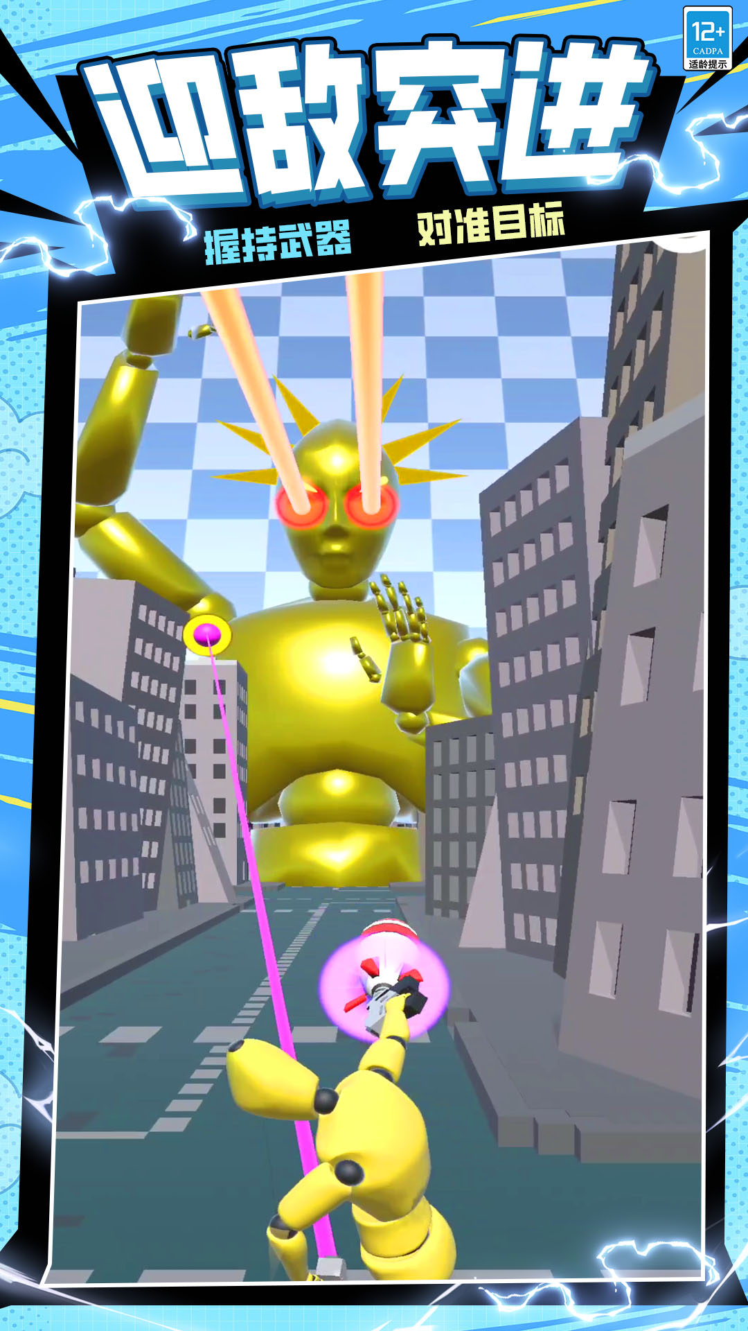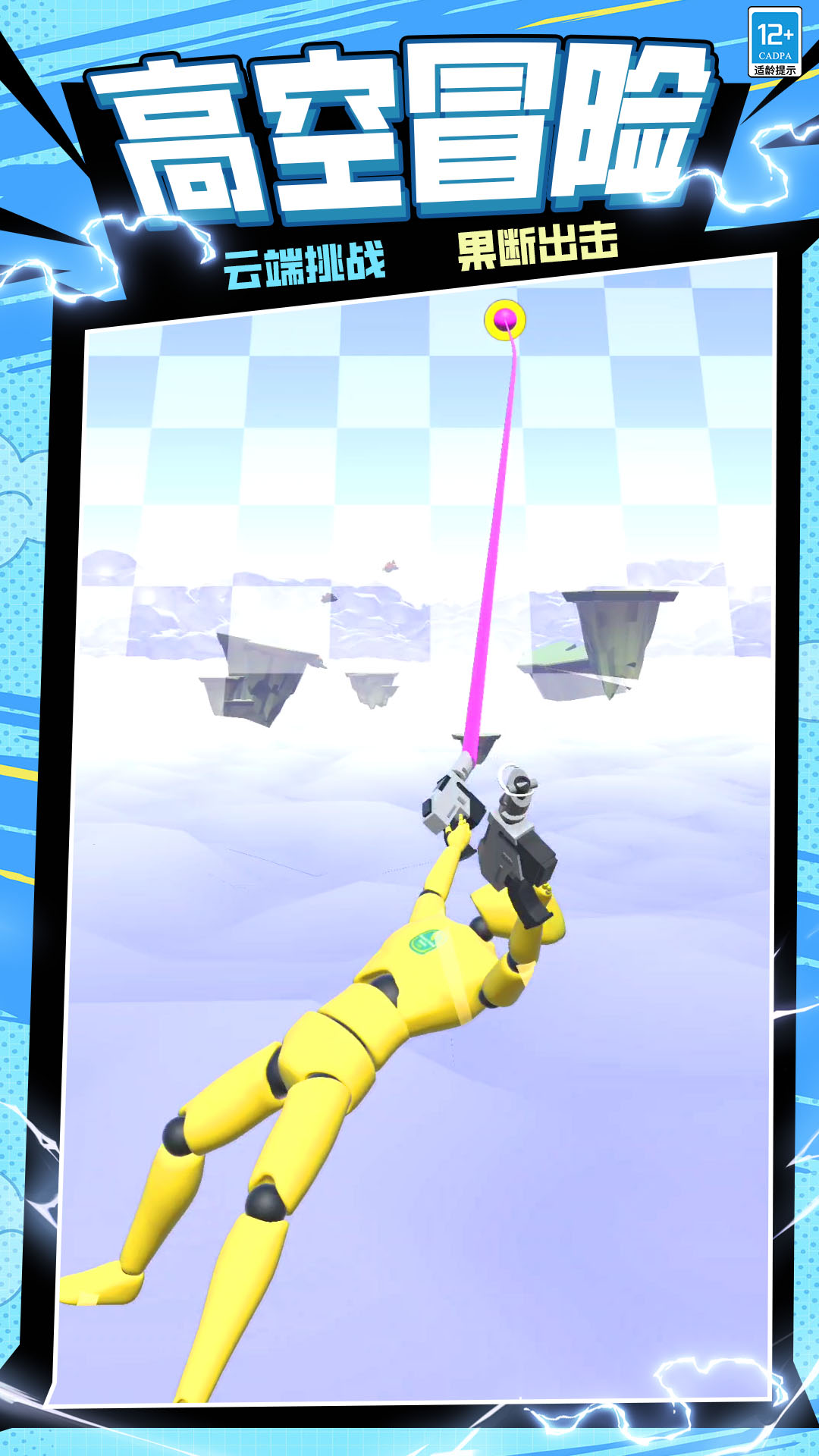 1、城市虚拟世界冒险,玩家借助飞钩道具荡跃穿梭,避开各类障碍向前闯关。