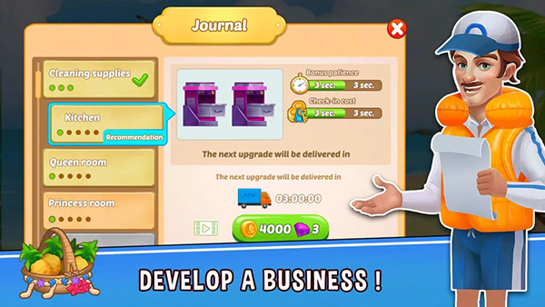 Hotel Empire Fever手游中你将会拥有着自己的酒店,主打的就是美式游戏画面风格,你将会体验到多样化的游戏玩法,无论是迎宾,还是为顾客们制作各种各样的美食都是能够给你带来无尽快感的哦,不断地升级自己的酒店还能提升盈利效率哦。