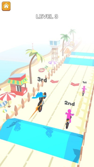 3、反馈即时直观:加速、躲避、超越的操作反馈清晰,冲过终点夺第一时成就感强烈,每一次闯关进度都能直观感知,提升动力。
