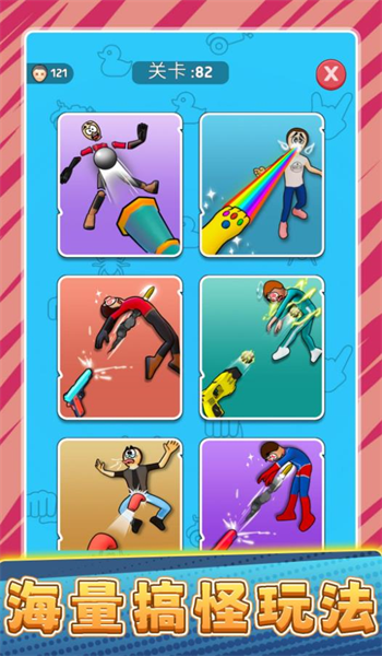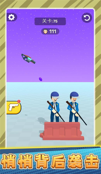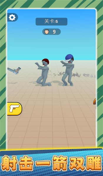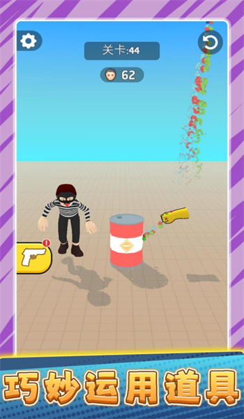 一款射击解谜的恶搞风游戏,玩家需在不同场景中把握时机,通过精准操作击中目标,过程中可切换手枪,飞刀等武器,还能利用反弹机制与各类道具突破挑战,仔细观察机关与移动道具,收集趣味工具辅助通关,特别是疯狂的其他玩法,需要解锁体验。