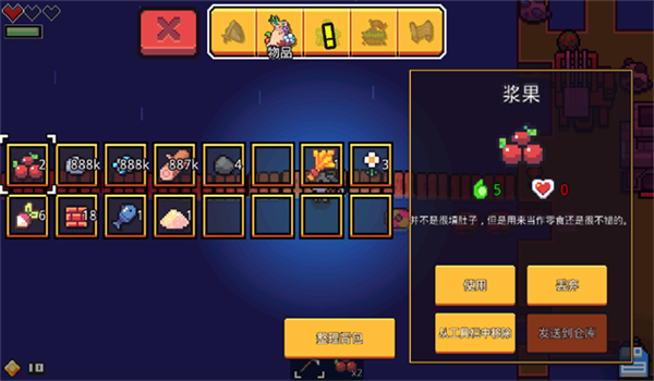 这里就是我们的背包了,游戏中所有的材料和消耗品都会存放在背包里面,如果物品过多而背包太小,只有两个办法: