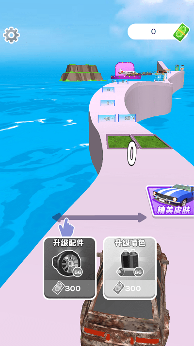 1. 通过虚拟方向盘与油门刹车控制车辆,精准操作避开赛道上的障碍物并收集散落的改装零件与金币奖励。
