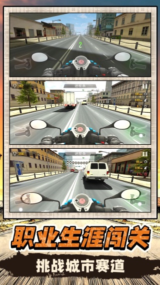 1、采用真实摩托车物理引擎,精准模拟过弯重心转移与不同路面的轮胎抓地力变化。