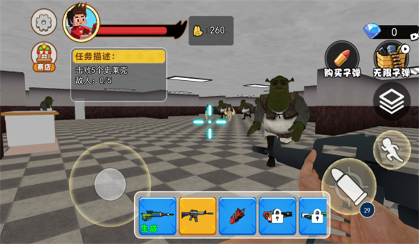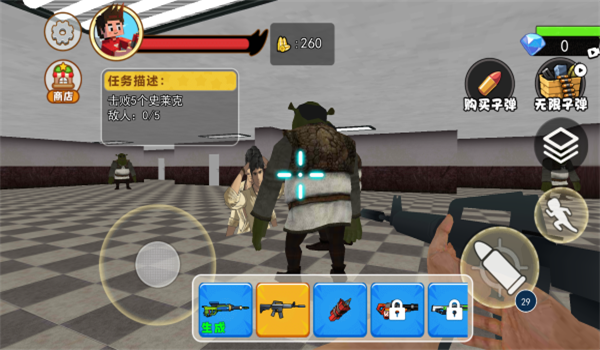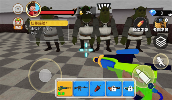 逃离史莱克游戏是一款画风非常独特的手机吃鸡竞技类游戏,这款游戏带来了非常刺激的射击玩法,支持多种对战模式,有不同的地图可选择,还有丰富的武器资源可收集,玩家需要根据地形制定合适的战术,利用枪械武器进行射击对战,还有使用道具进行解谜冒险哦。
