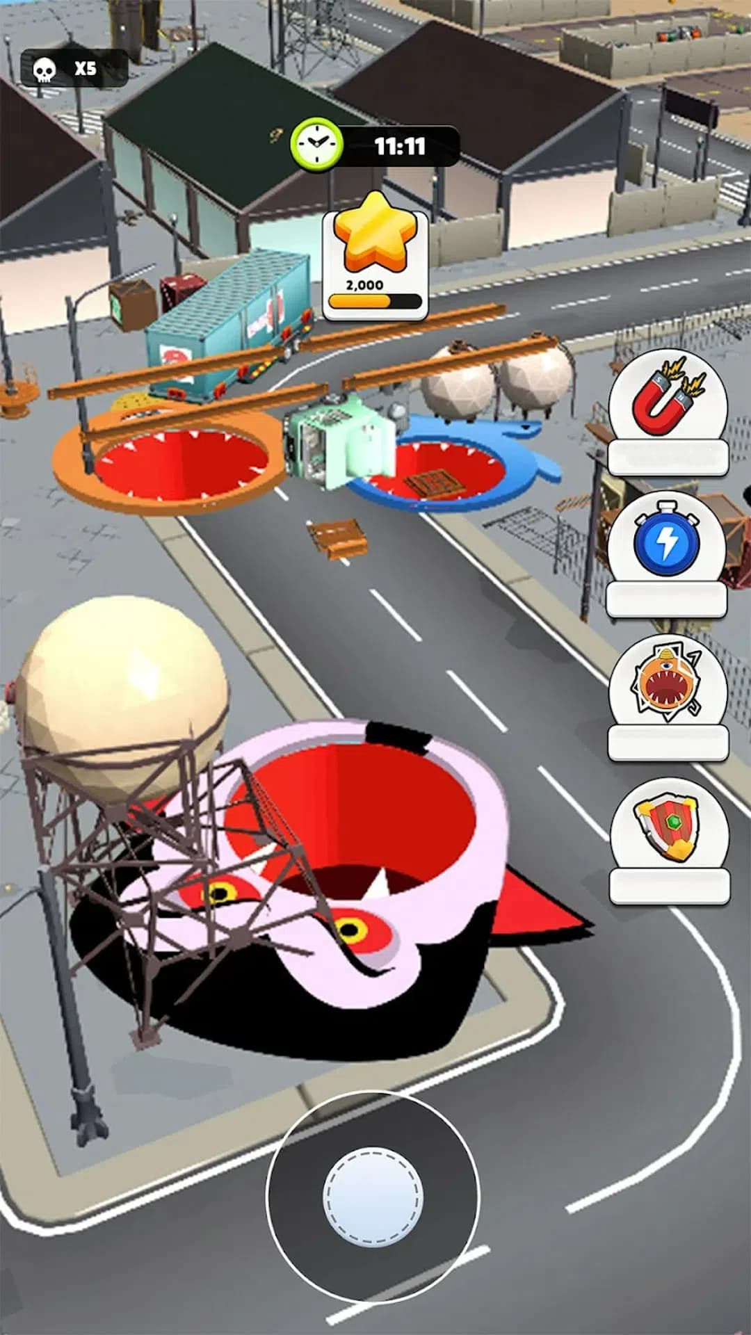 3、丰富多样的可吞噬对象设计,从小型街景物品到大型城市建筑应有尽有;