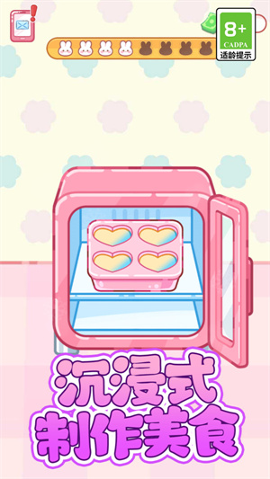 1.在厨房场景中,玩家可以选择不同的食谱,按照步骤完成烹饪,每一步都有简单的互动小游戏,增加趣味性。