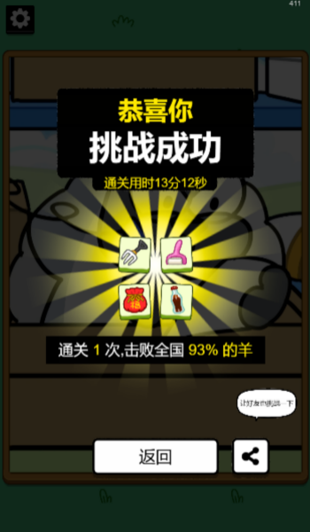 2、通关后会显示用时与全国击败比例,带来直观的成就感,同时支持邀请好友挑战,增强互动趣味性。