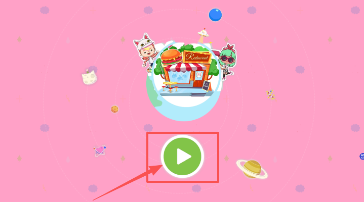 1、点下方绿色播放按钮,箭头指着的位置,开启Ricetown快餐店的游戏内容。