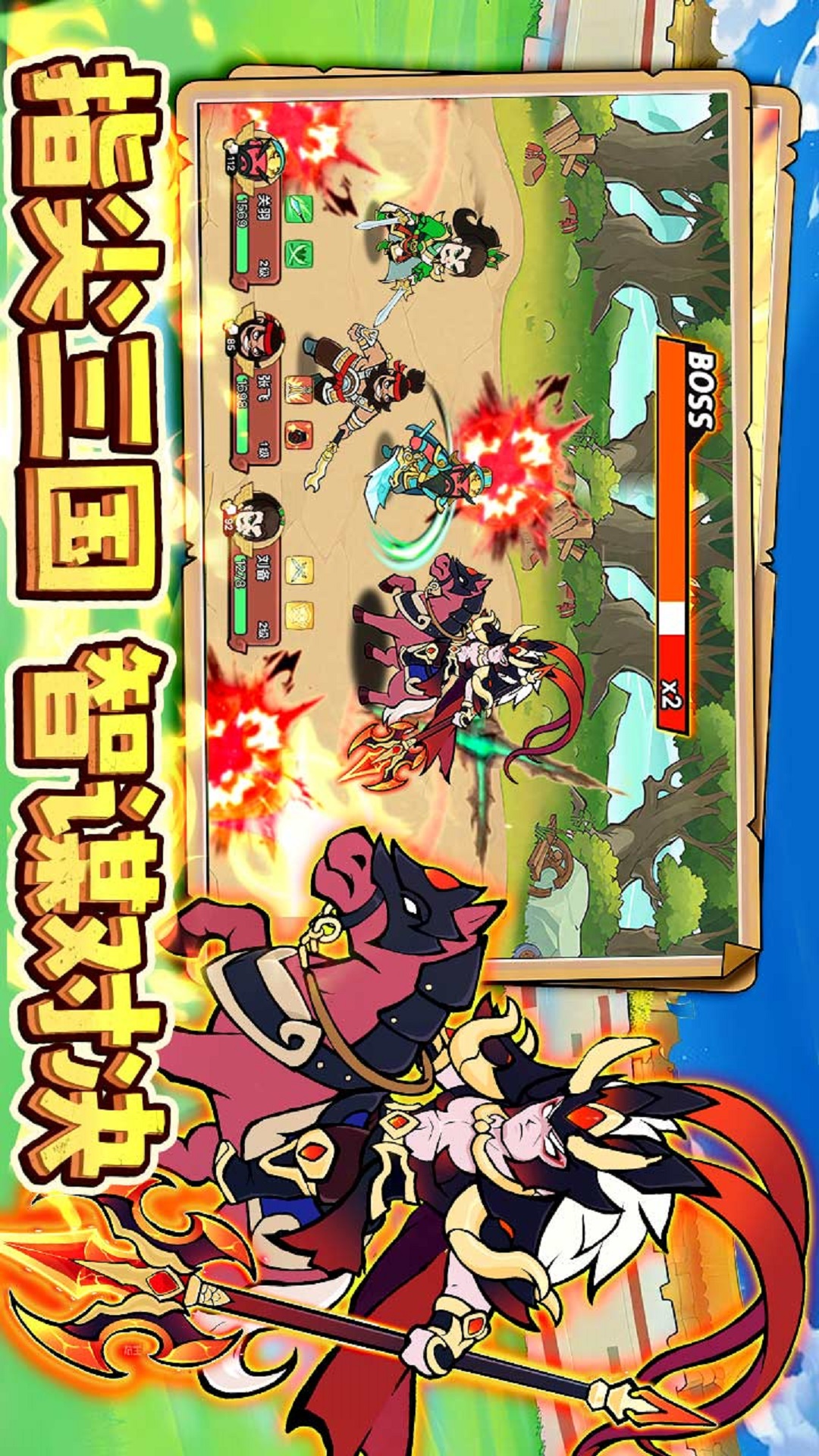 3、社交玩法有亮点,和朋友一起组队打BOSS,互相扔武将技能。