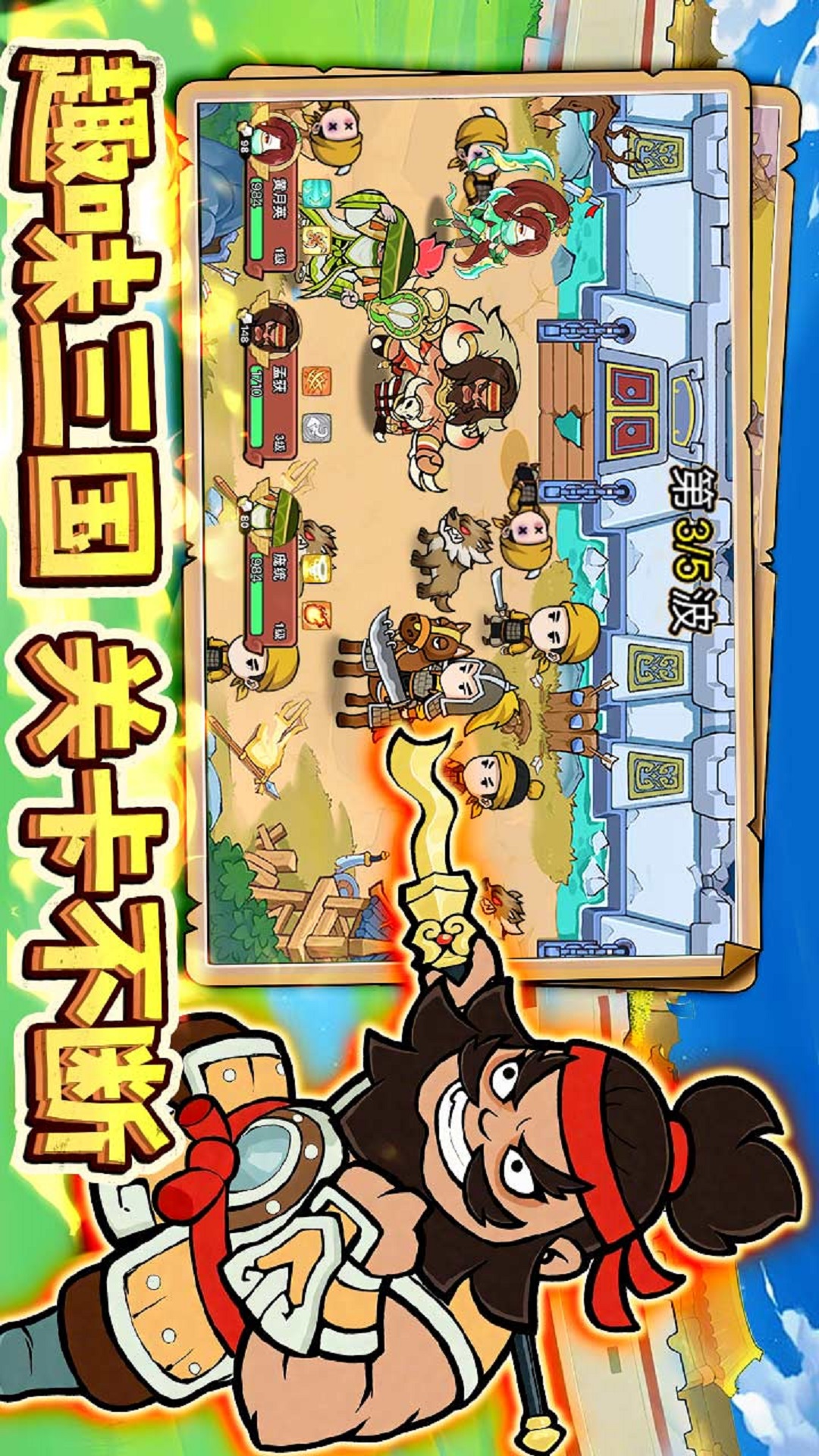 2、技能组合玩脑洞,比如让张飞的吼叫接上诸葛亮的雷阵,伤害直接翻倍炸屏。