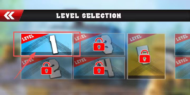2、选LEVEL SELECTION里的关卡,当前1级已亮,其余带锁待解锁后挑战。