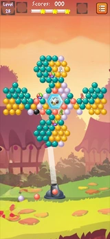 3.玩家需要将屏幕下方的彩色气泡发射到上方的气泡矩阵中,当三个或更多相同颜色的气泡相连时,它们就会破裂并得分。