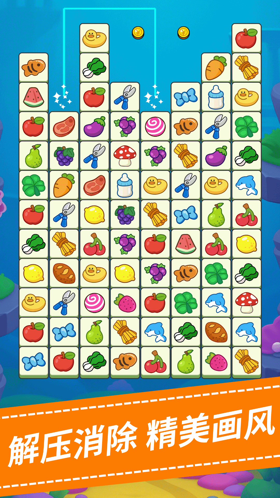 3、玩的时候多留意有没有连在一起的好几对,能一起消掉会更爽,不过也不用刻意等,先把能消的消了,玩着玩着就能摸出窍门。