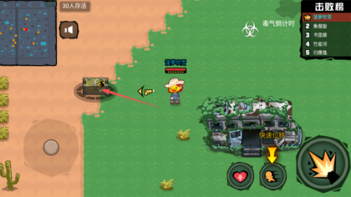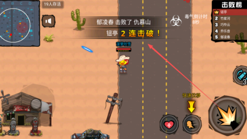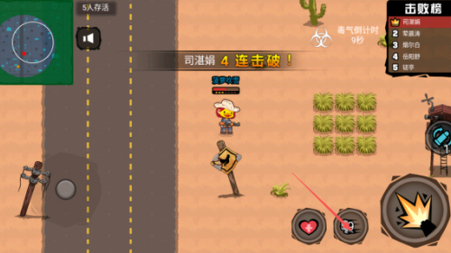 2、以及拿起了武器之后,我们需要点击右侧的按钮进行射击,将其他的对手全部击杀。