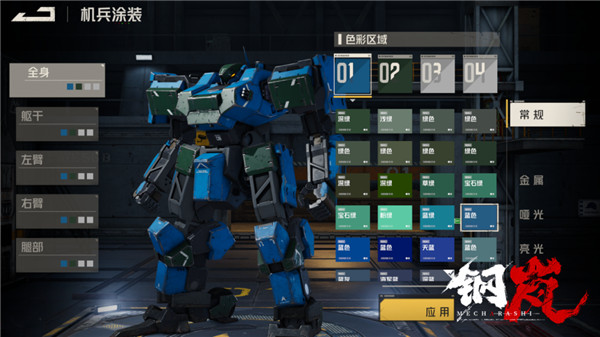 在施密特色彩最新公布的第三版色彩标准中,共划分了四大系列:施密特常规系列(SCHMIDT Classic),施密特金属系列(SCHMIDT Metal),施密特哑光系列(SCHMIDT Matte),施密特亮光系列(SCHMIDT Gloosy)。不同的机兵制造商和不同的武装组织对四大系列有着不同的偏好和倾向性,施密特色彩会从色卡、颜色标准、涂装材料标准等层面上提供全方位的服务。