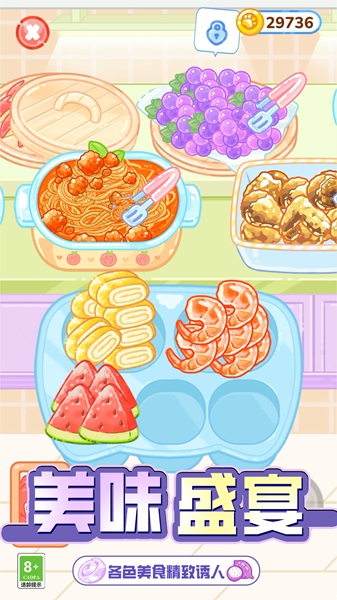 2、画面和音效都很治愈,可爱的卡通风格加上真实的烹饪声音,玩起来轻松又享受。