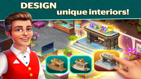 在炫目多彩的关卡中你还能解锁获得各式各样极具标志风格的内饰,玩家要翻新并装饰自己的酒店,还能自由的更改设计场景,让酒店能焕然一新。