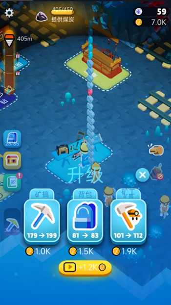 3、玩家需根据实时地形调整开采策略,不断的升级自己的工具,积极挖掘,成为富有的矿产主。