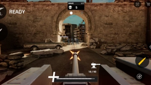 4、手动操作武器攻击前来突袭的敌人,注意进行隐蔽在防御基地后面,以免被敌人射击到。