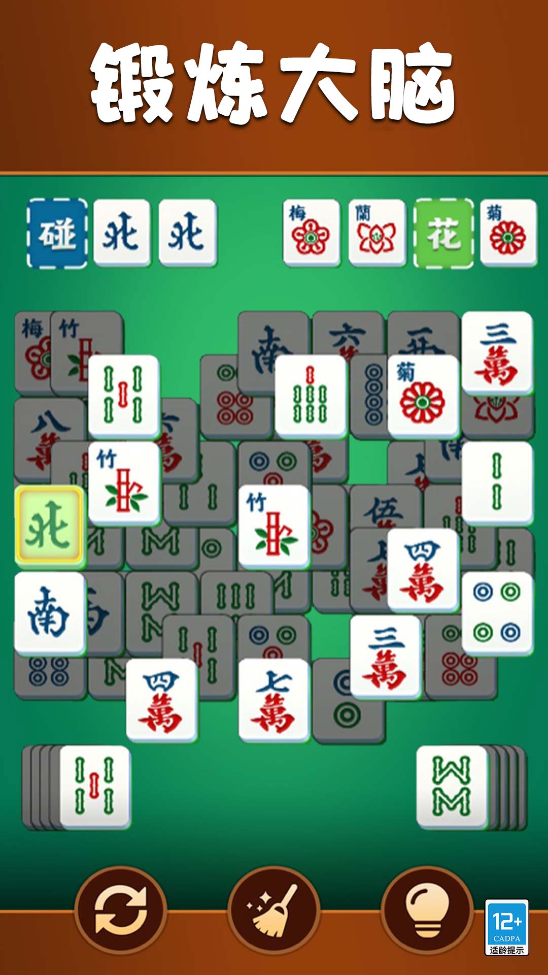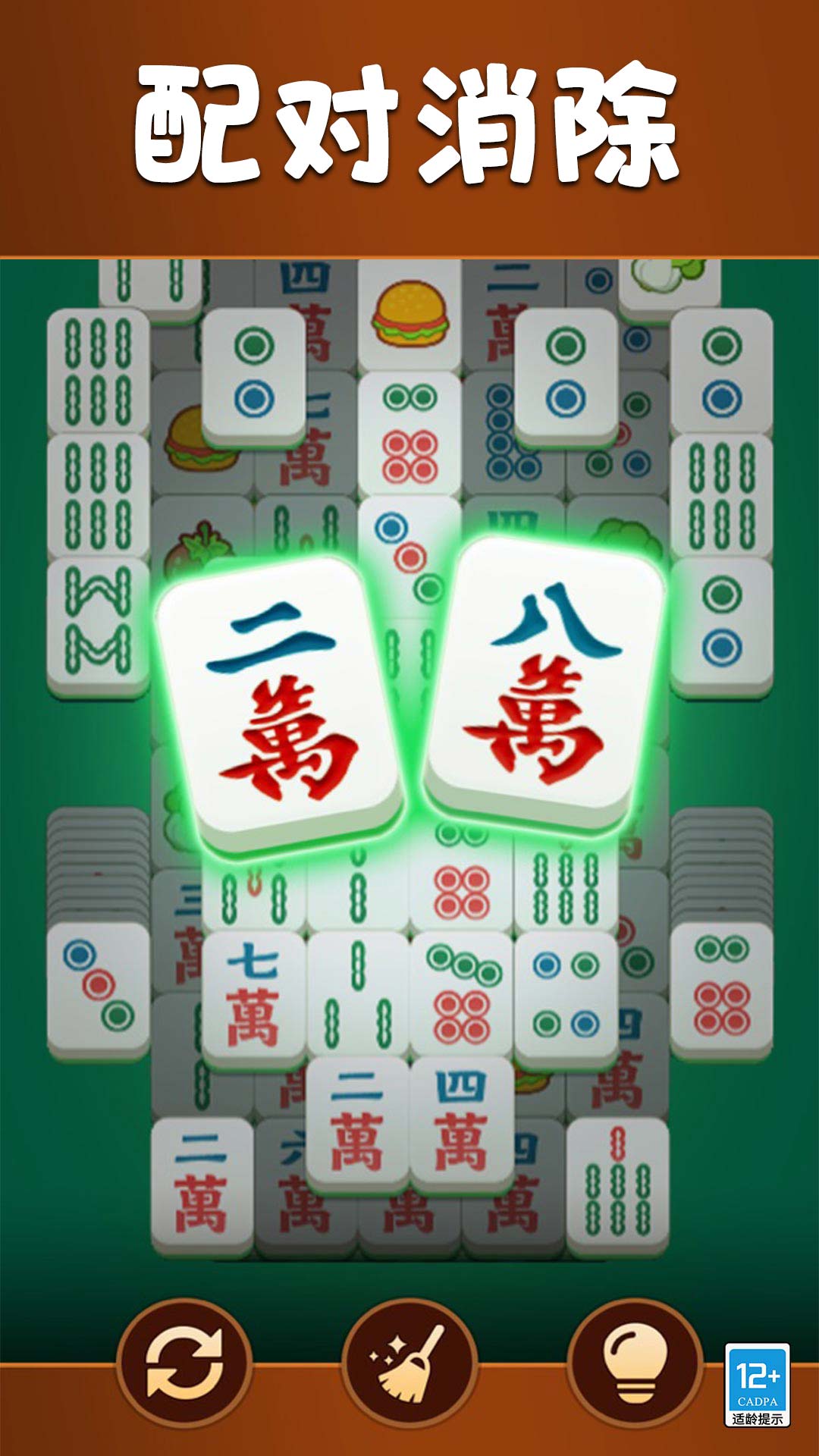 1、需要在堆满麻将的牌桌上找出三张相同的牌,点击它们就能消除。因为牌堆可能很乱,你得快速扫描匹配。
