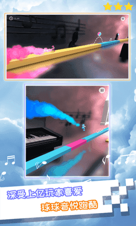 钢琴球球游戏是一款非常考验玩家手速的休闲益智类游戏,游戏还可以锻炼玩家的音乐节奏感,玩家需要根据音乐的节奏来点击屏幕使球球进行跳跃前进,过程中,玩家还会遇到很多的陷阱和障碍物,玩家需要及时操作进行躲避,才能够顺利的到达指定的终点。游戏拥有超多不同风格的音乐,对于玩家来说音乐节奏越快难度就会越大。