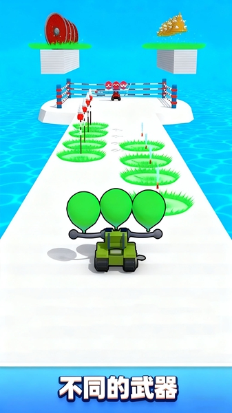 气球人争锋战游戏里,作为气球小人,你要面对超多关卡,玩法是跑酷的模式,不过你可以持有各种武器,冲刺的途中会遇到很多敌人,你的武器可以消灭它们,而且也会遇到一些机遇,比如提升武器攻击力什么的,而且每一关都有一个BOSS,必须在跑酷的途中积累足够的实力才行。