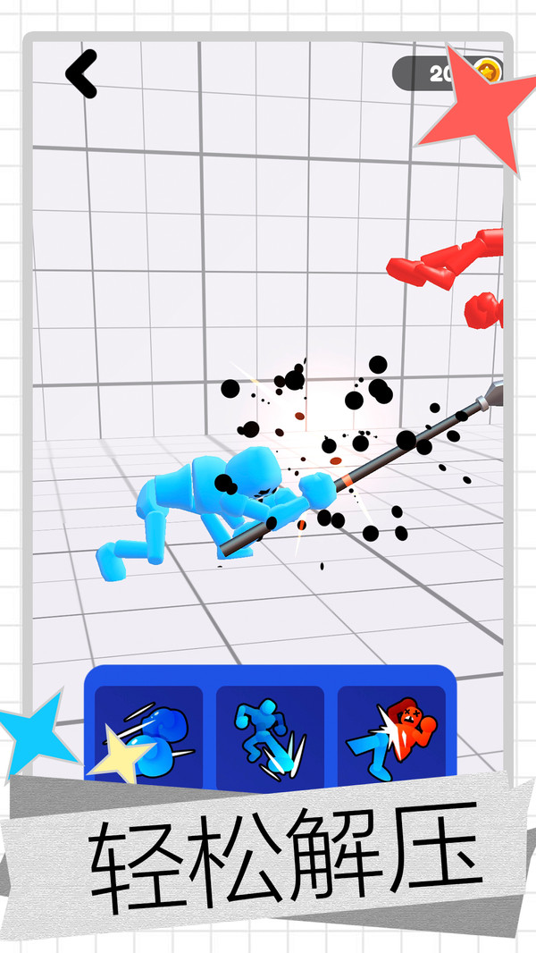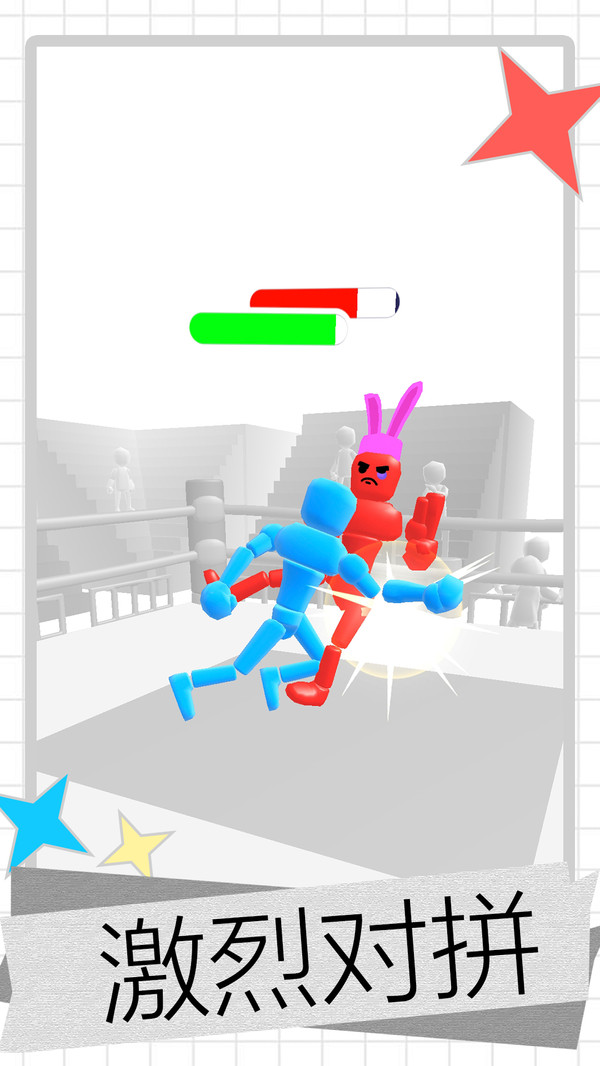 极限大闯关游戏是一款画风很简洁的火柴人格斗闯关游戏,红蓝双方的对决一触即发,选择好你的火柴人英雄,深入战场来开启本次激情对决,你需要运用一招一式来击败对手,随机匹配其他的真实玩家来参与较量,最终看看谁是真正的功夫之王。