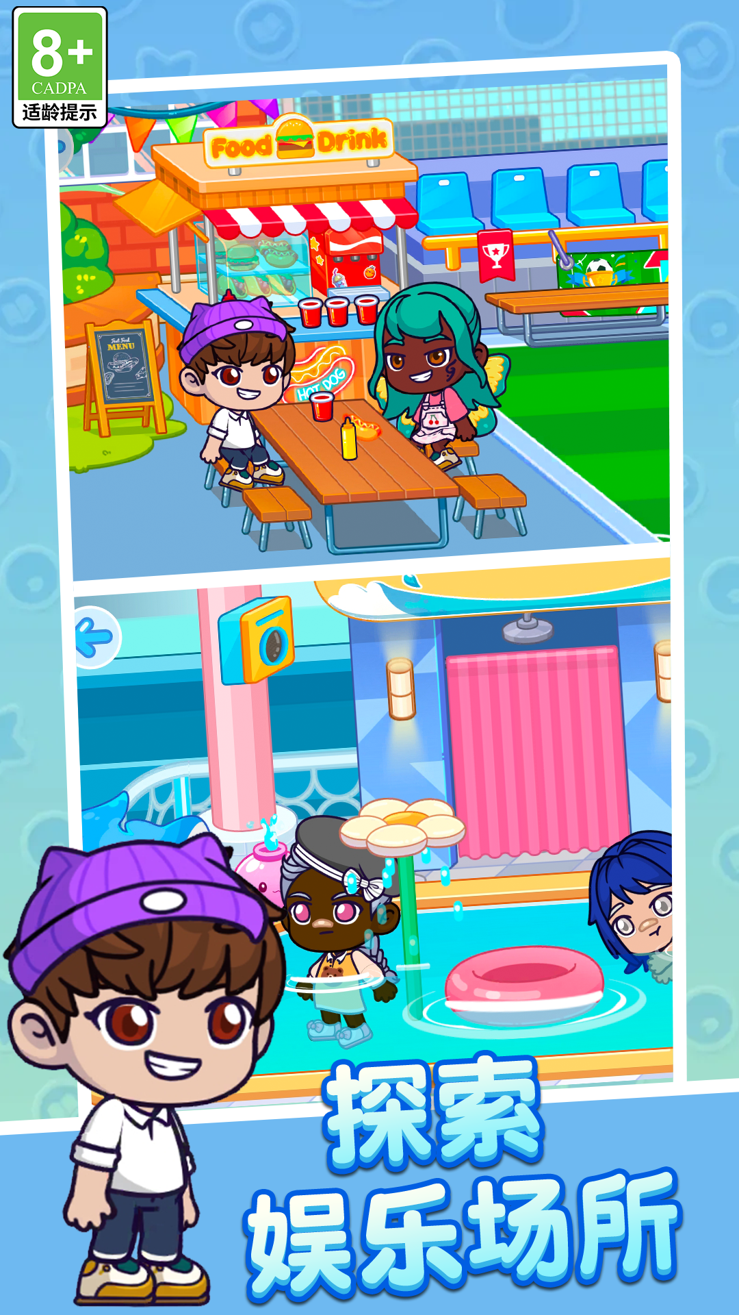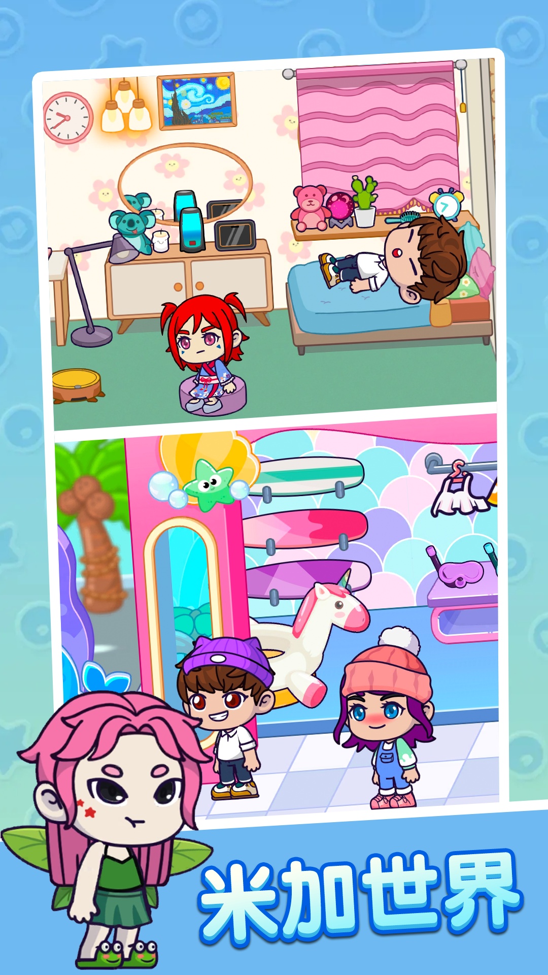 米加镇樱花世界游戏:小镇地图非常大,还有各种娱乐场所,玩家可以自由探索,超多服装和配饰都可以使用,把自己的角色打扮的漂漂亮亮的!没啥事的时候,可以和其他的NPC互动,邀请他们一起去游乐场玩耍,或者一起去路边小摊吃美食!