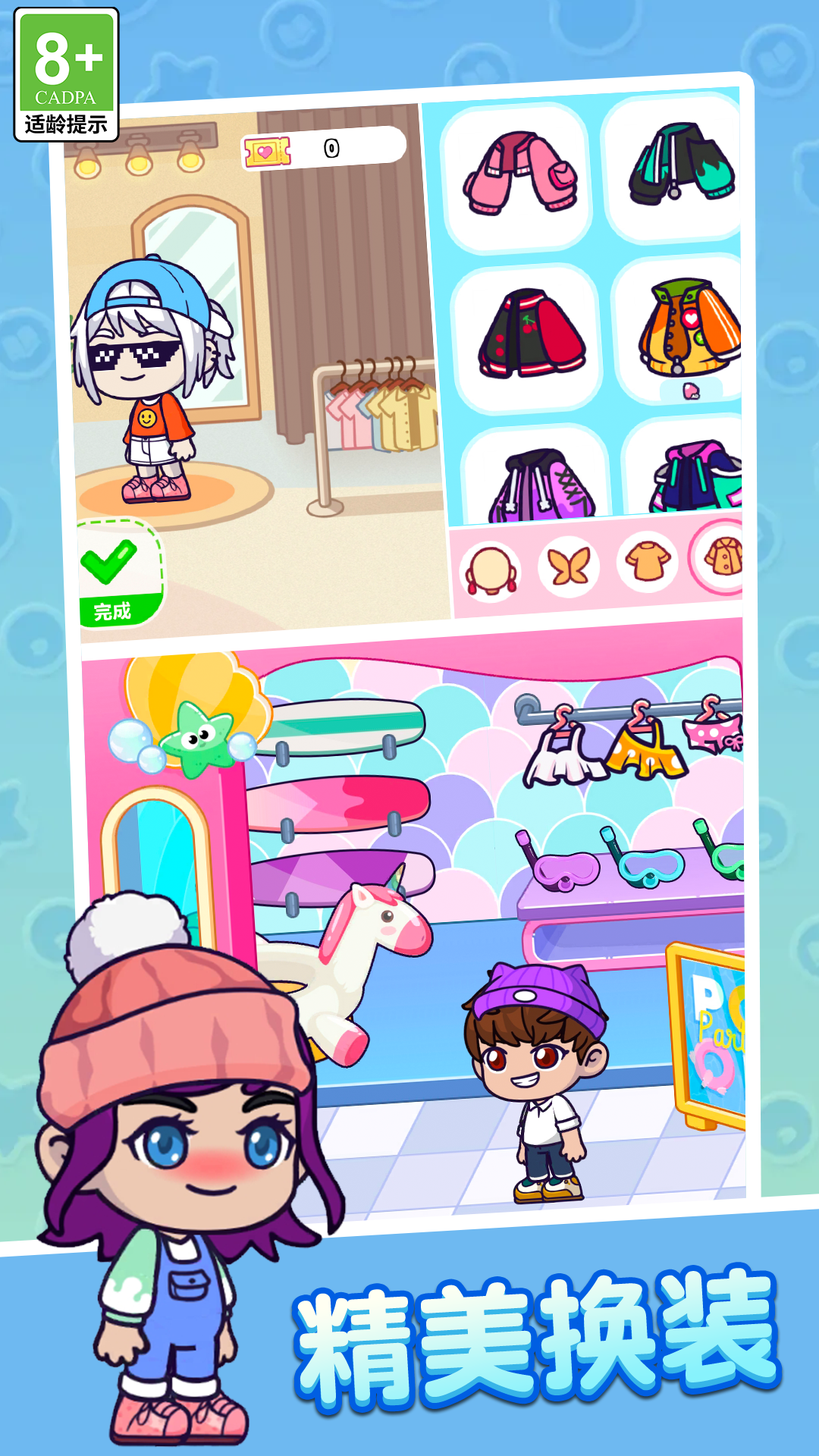 2、服装搭配超丰富,上百件单品混搭出无限可能,今天甜妹明天酷盖,每天都有新造型。