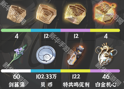 低频聚方声核x4、中频聚方声核x12、高频聚方声核x4、贝币x102.33万、剑菖蒲x60、特共鸣促剂x122、白金机心x46