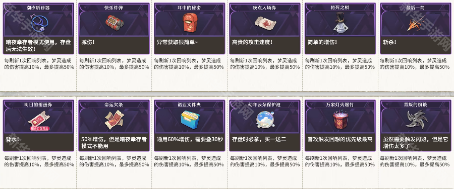 无尽梦回紫色奇想造物哪个好?在游戏中玩家每完成一轮战斗将获得一次随机Buff选择的机会,合理选择buff能帮助我们通关深渊。那么哪些紫色奇想造物是值得玩家选择的呢?有需要的小伙伴接下来就和小编一起看看《无尽梦回》紫色奇想造物选择推荐吧。