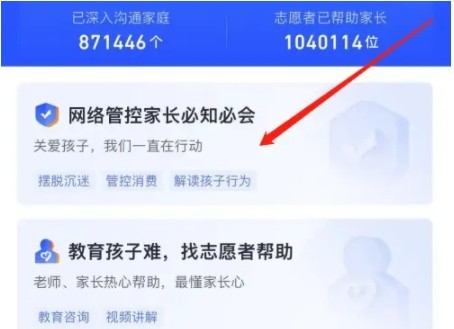 5、跳转该页面后点击网络管控家长必知必会。