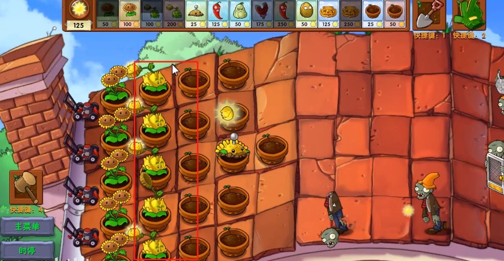 经典塔防模式飞行僵尸无视路线前进,也不会啃咬在路线以外的植物